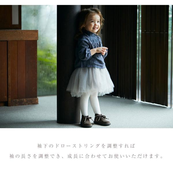 お子さまの成長に合わせて調整できる袖下のドローストリングは、長く着られておしゃれも楽しめるマールマールならではの発明。