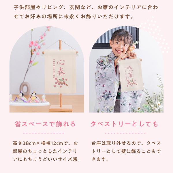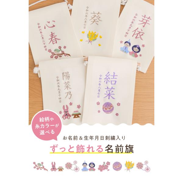 ナチュラル 名前旗 女の子 刺繍 名入れ 命名旗 命名書 ミニ ホワイト タペストリー ひな祭り 節句 桃の節句 生年月日 節句 初節句