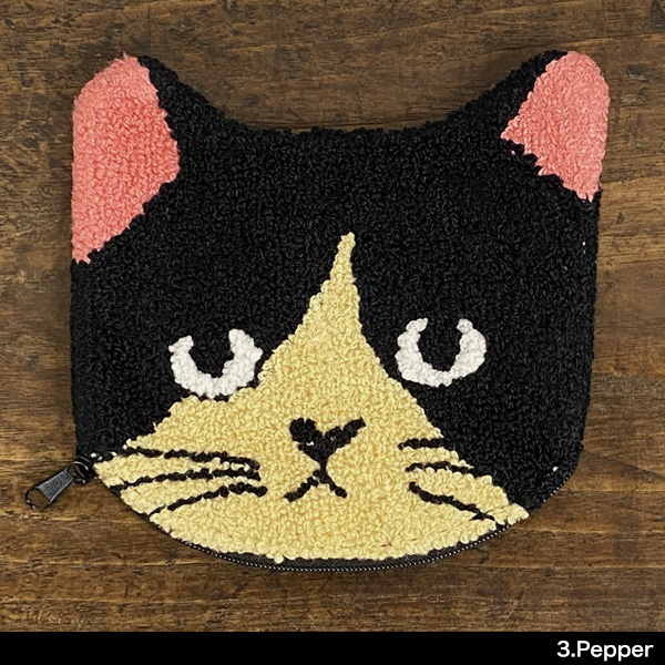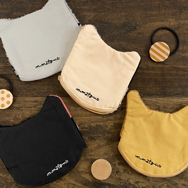 猫の顔の形のミニポーチです。