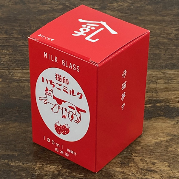 星羊社 猫印ミルク箱入りグラス(いちごミルク) ネコ 猫グッズ ガラスコップ ねこ 雑貨 おしゃれ かわいい プレゼント