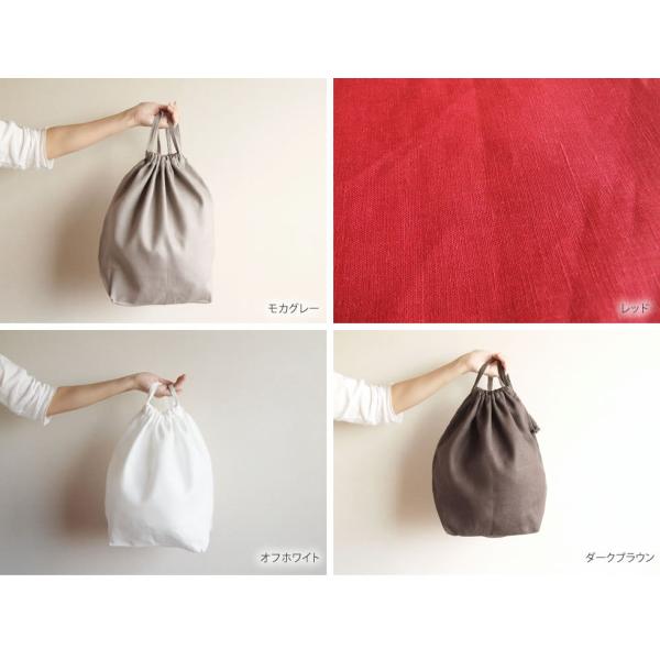 上質なリネンで作った日本製の巾着袋。しっかり目のリネン100%の生地なので、そのままお買い物袋やエコバッグとしてもご使用いただけます。