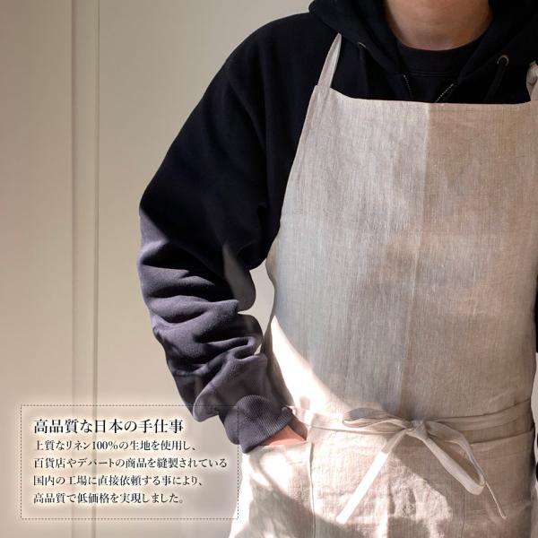 「リネン100%の風合いと丁寧な手仕事。日本製のメンズフルエプロン」