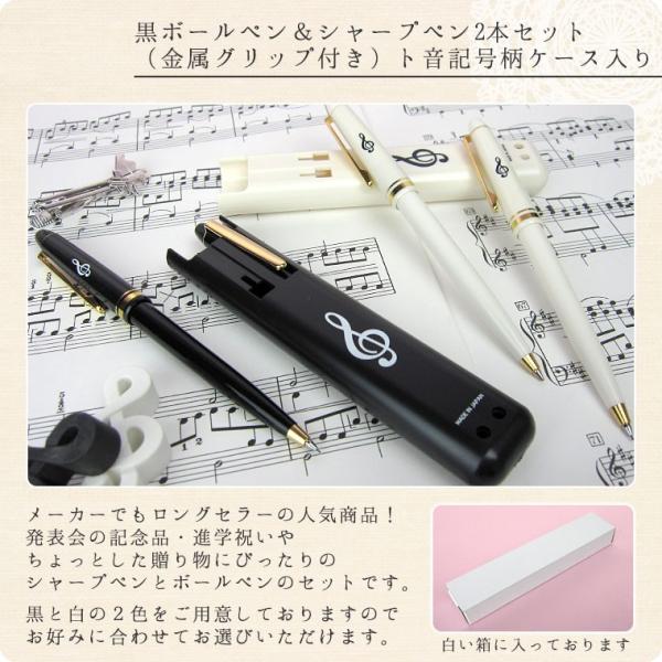 黒ボールペン&シャープペン2本セット(金属グリップ付き)ト音記号柄ケース入り(全2色)