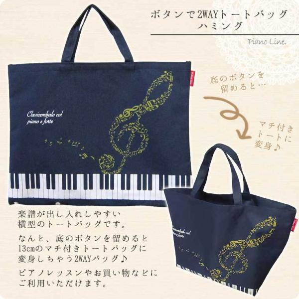 ボタンで2WAYトートバッグ(音符/鍵盤柄)[Pianoline]【レッスンバッグ・音楽バッグ】【有料名入れ可】