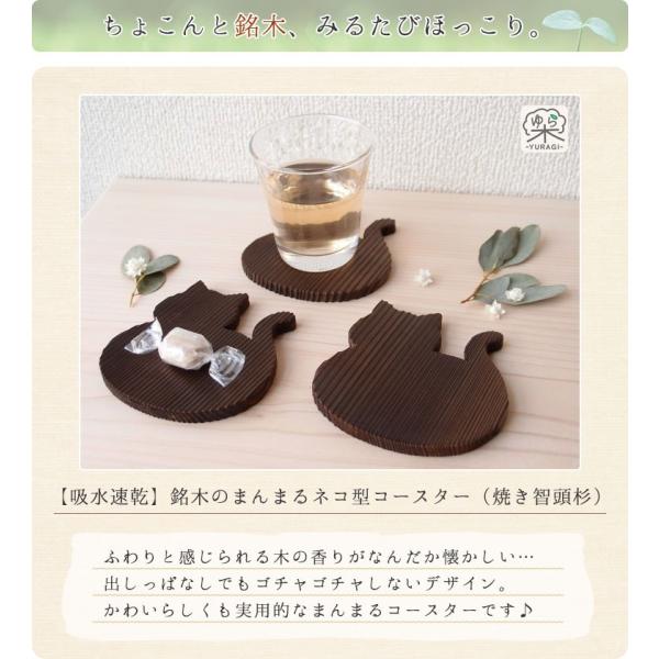 【吸水速乾】銘木のまんまるネコ型コースター【焼き智頭杉】