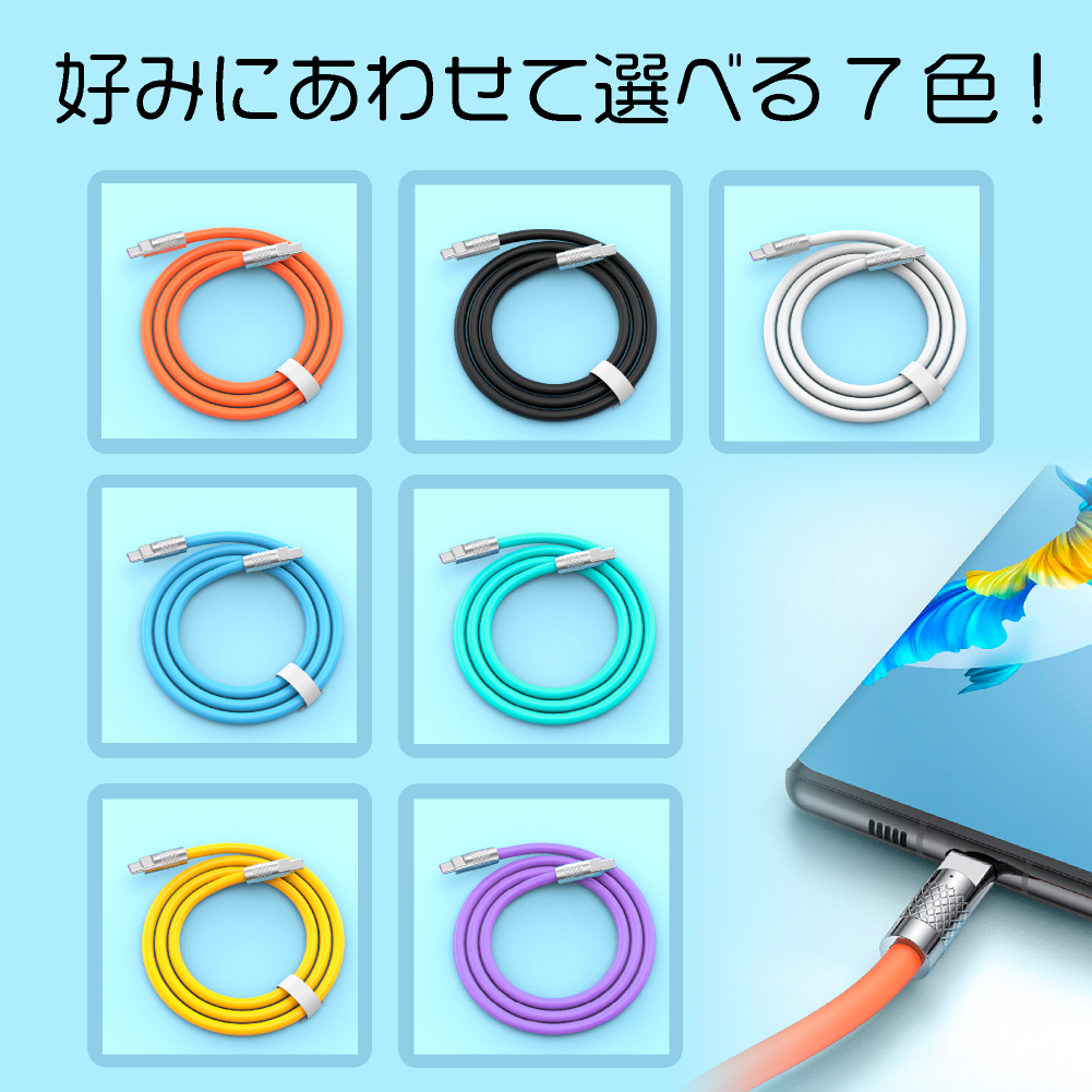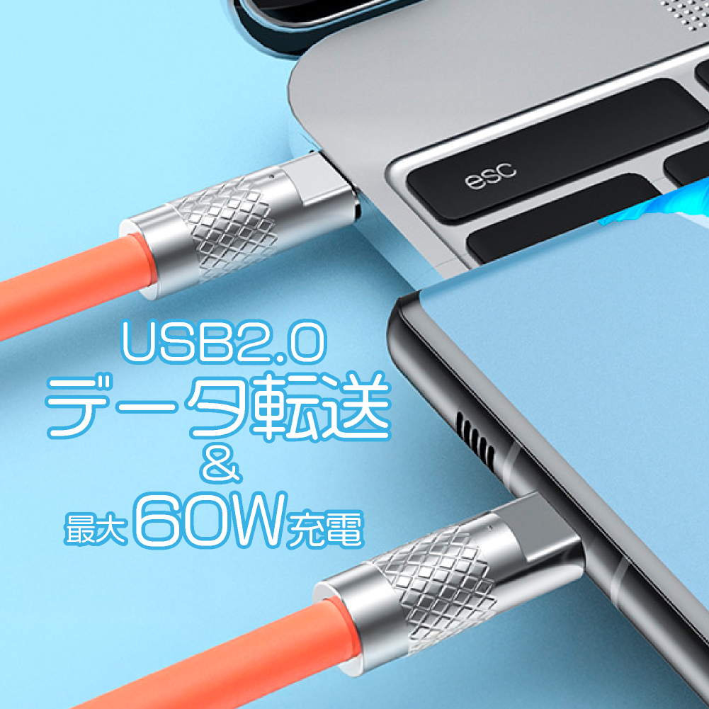 60W急速充電対応 やわらかシリコン スリムUSBケーブル USB TYPE-C to C 1m