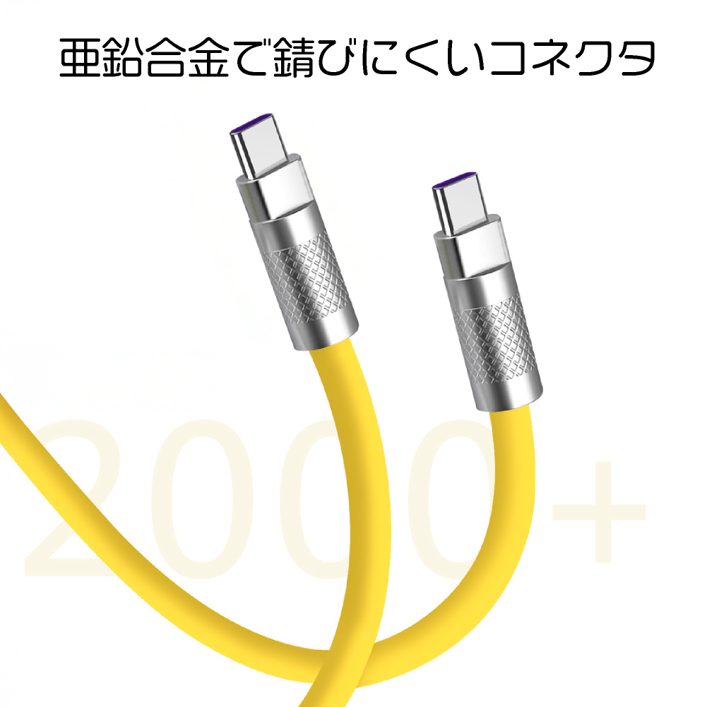 60W急速充電対応 やわらかシリコン スリムUSBケーブル USB TYPE-C to C 2m