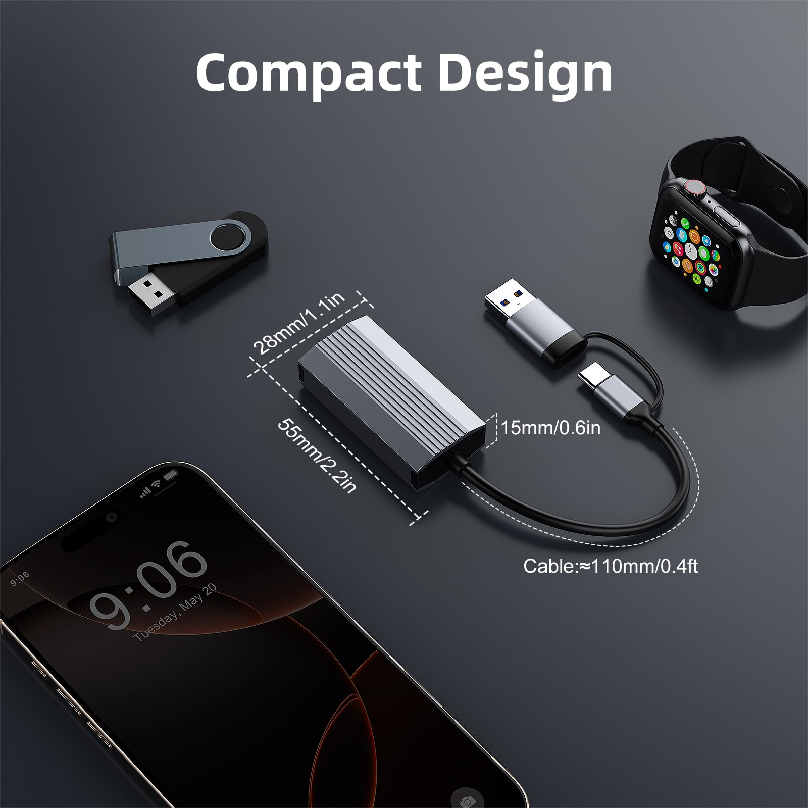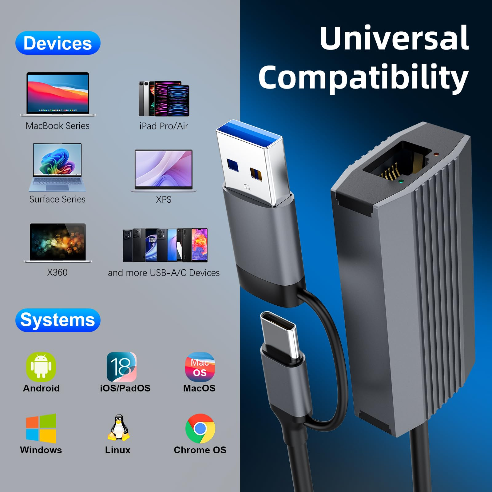 2.5G 有線LANアダプター USB Type-C & USB-A両対応 2.5Gbps RJ45 イーサネットLAN アダプタ