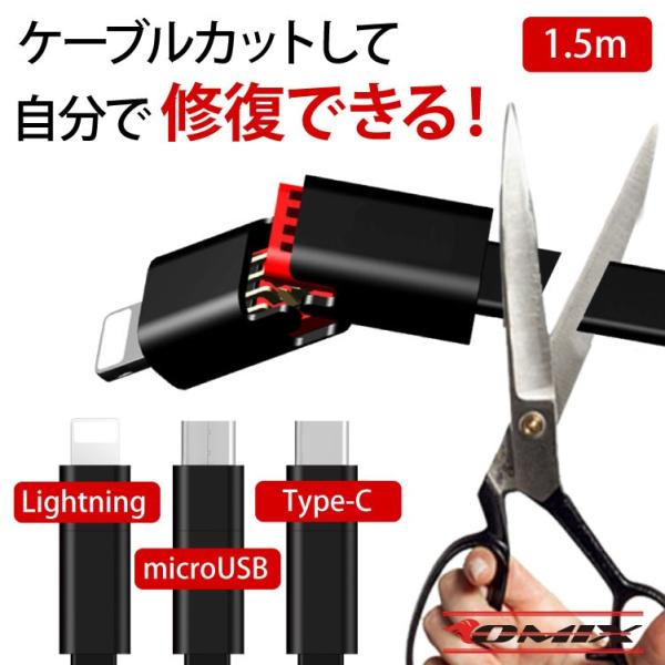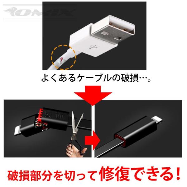 断線しても復活! クイックリペアUSBケーブル micro/Type-c/Lightning 断線部分を切ってリペア
