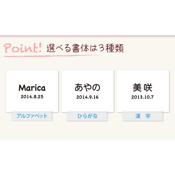 文字入れ書体:アルファベット、ひらがな、カタカナ、漢字、から選べます
