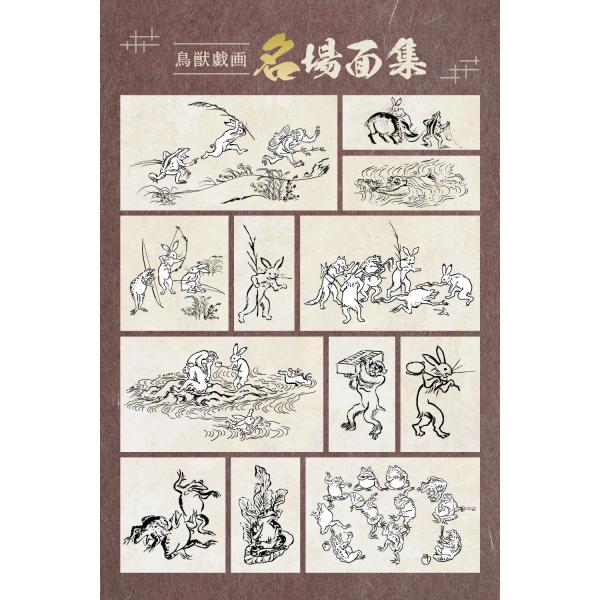 鳥獣戯画 縮小絵巻物 第一巻 甲巻 相撲うさぎ 相撲かえる ウサギ カエル レキシ 絵巻物 鳥獣人物戯画
