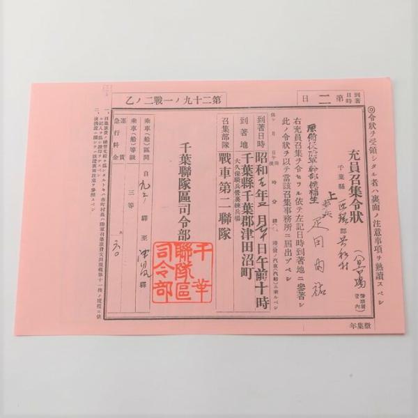 臨時召集令状 赤紙 應召準備予定表 戦争 太平洋戦争 徴兵令 レプリカ だからわかるNo.23