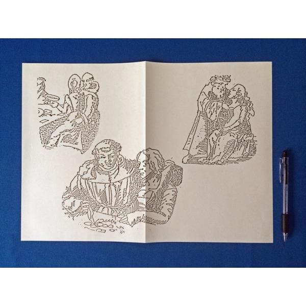 商品は、「ローマ・カトリック教会免罪符(レプリカ)、免罪符の販売の様子(図)、ローマ教会の風刺画(図)、ルター像(図)」史料4点セットです。