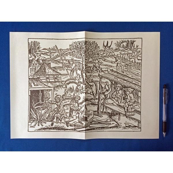 商品は、「中世史料5点セット◆農民像(絵)、ドイツ騎士像、植物図鑑、魔女狩り、刑罰(図)」です