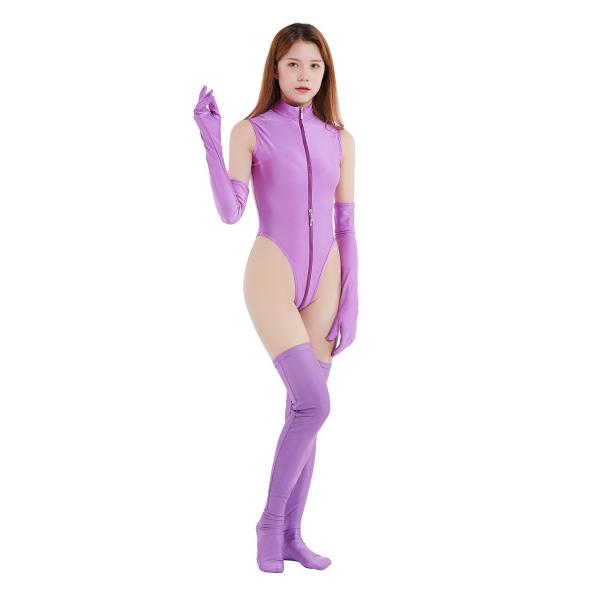 ☆ツルツルニット生地の、前ファスナーTバックレオタード+ロンググローブ+ロングタイツの3点セットです。単品で買うよりお買い得です。