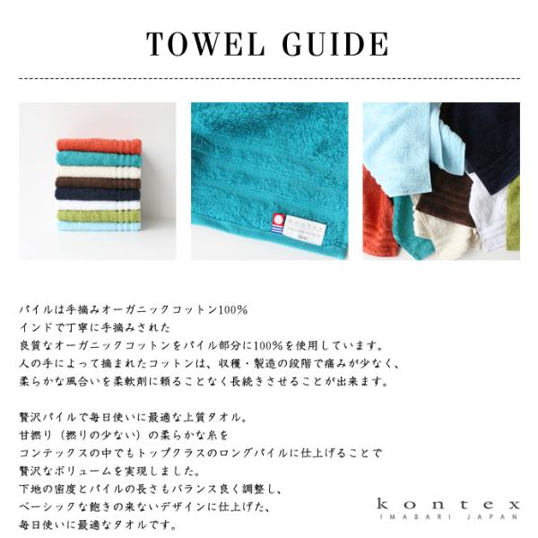 ■コンテックス Kontex オーガニックコットン 100% 今治タオル PLUS COLOR ゲストタオル(34x38cm) & フェイスタオル(34x80cm)