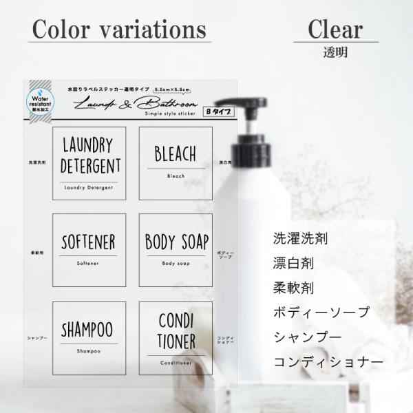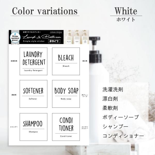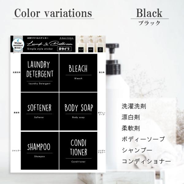 Laundry&Bathroomラベル Bタイプ 耐水 防水 シール 生活雑貨 ランドリー シャンプー コンディショナー 洗剤 かわいい おしゃれ おしゃれ モノトーン