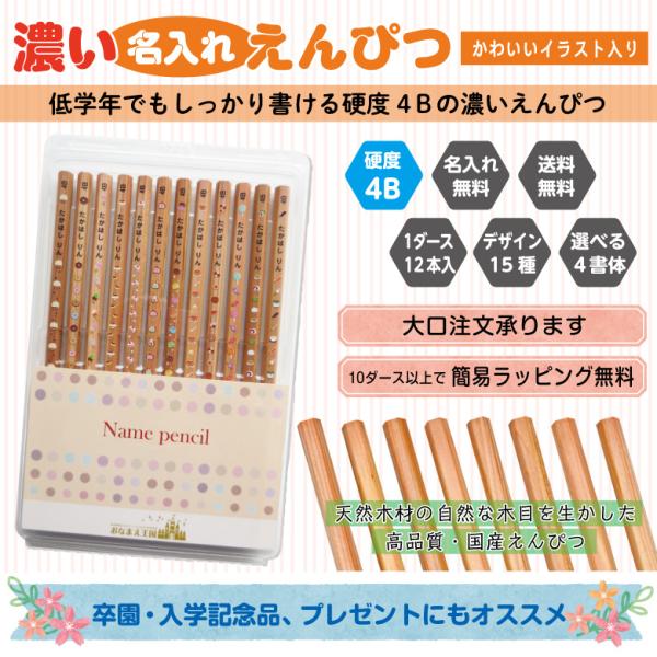濃い名入れ 鉛筆 [イラスト入り] 4B 12本入り