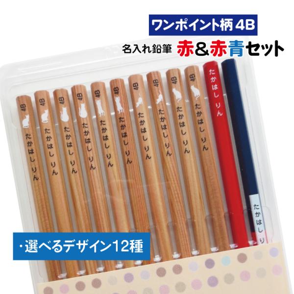 名入れ 鉛筆 [ワンポイント柄] 赤&赤青セット 2B/B/HB 12本入り