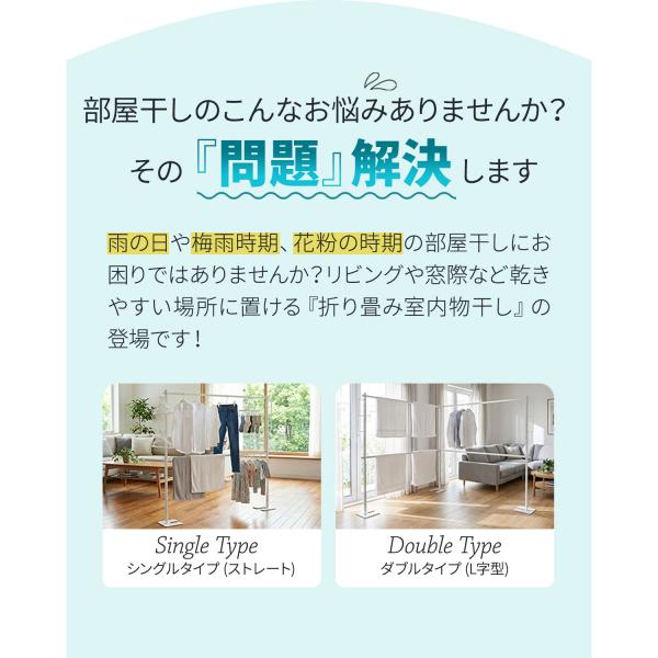 雨の日や梅雨時期、花粉の時期の部屋干しにお困りではありませんか?リビングや窓際など乾きやすい場所に置ける『折り畳み室内物干し』