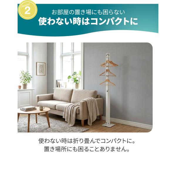 サッと物干しバーを設置するだけの、折り畳み式の室内物干しです。乾きやすい場所に自由に置く事ができ、使わない時も折り畳んでコンパクトに。