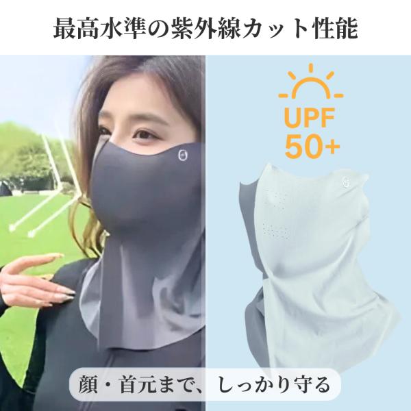 日焼け止めマスク フェイスカバー UVカット UPF50+ 接触冷感 小顔見え 首までカバー 男女兼用 ストレッチ素材 夏用 紫外線対策マスク