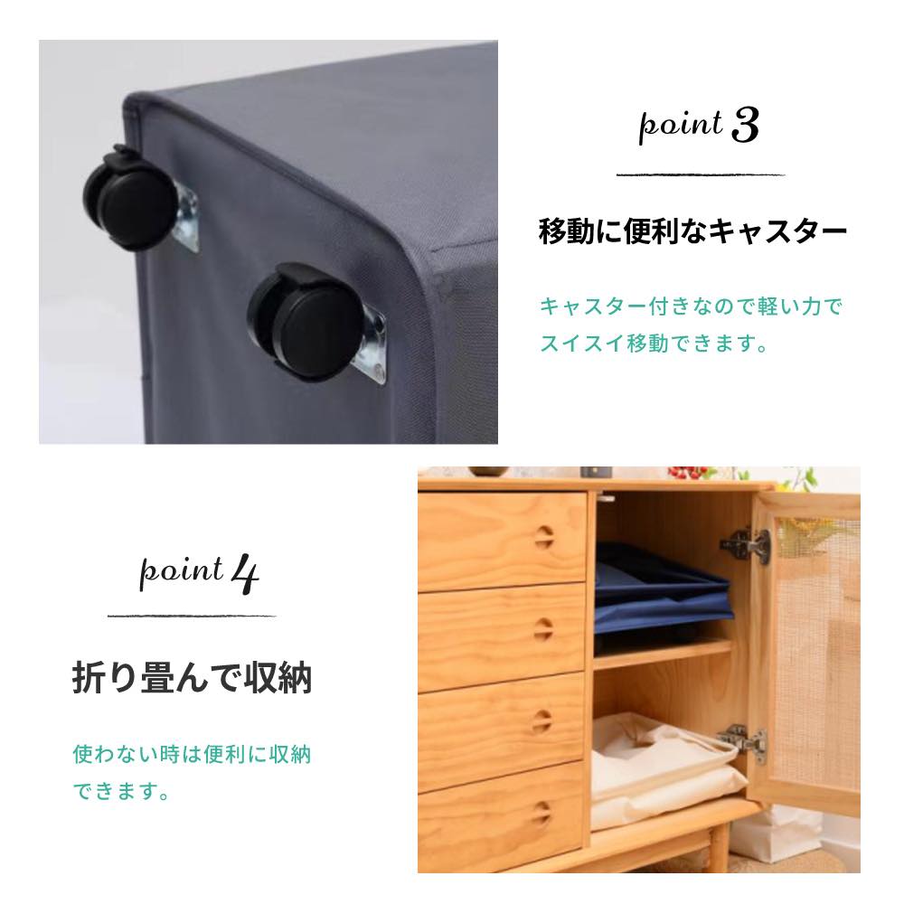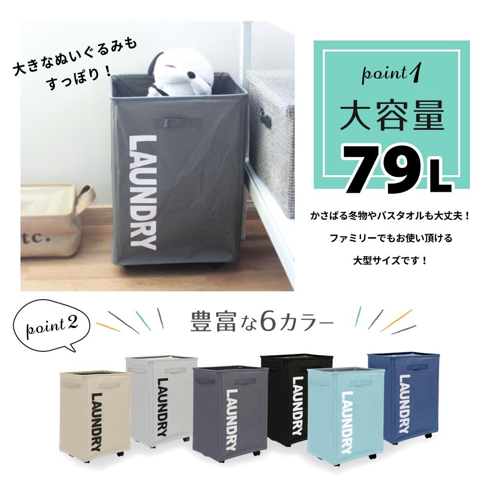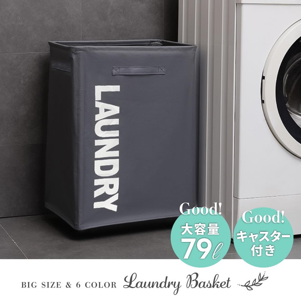 大容量79Lのランドリーバスケット 洗濯カゴ 洗濯物 かご キャスター付き