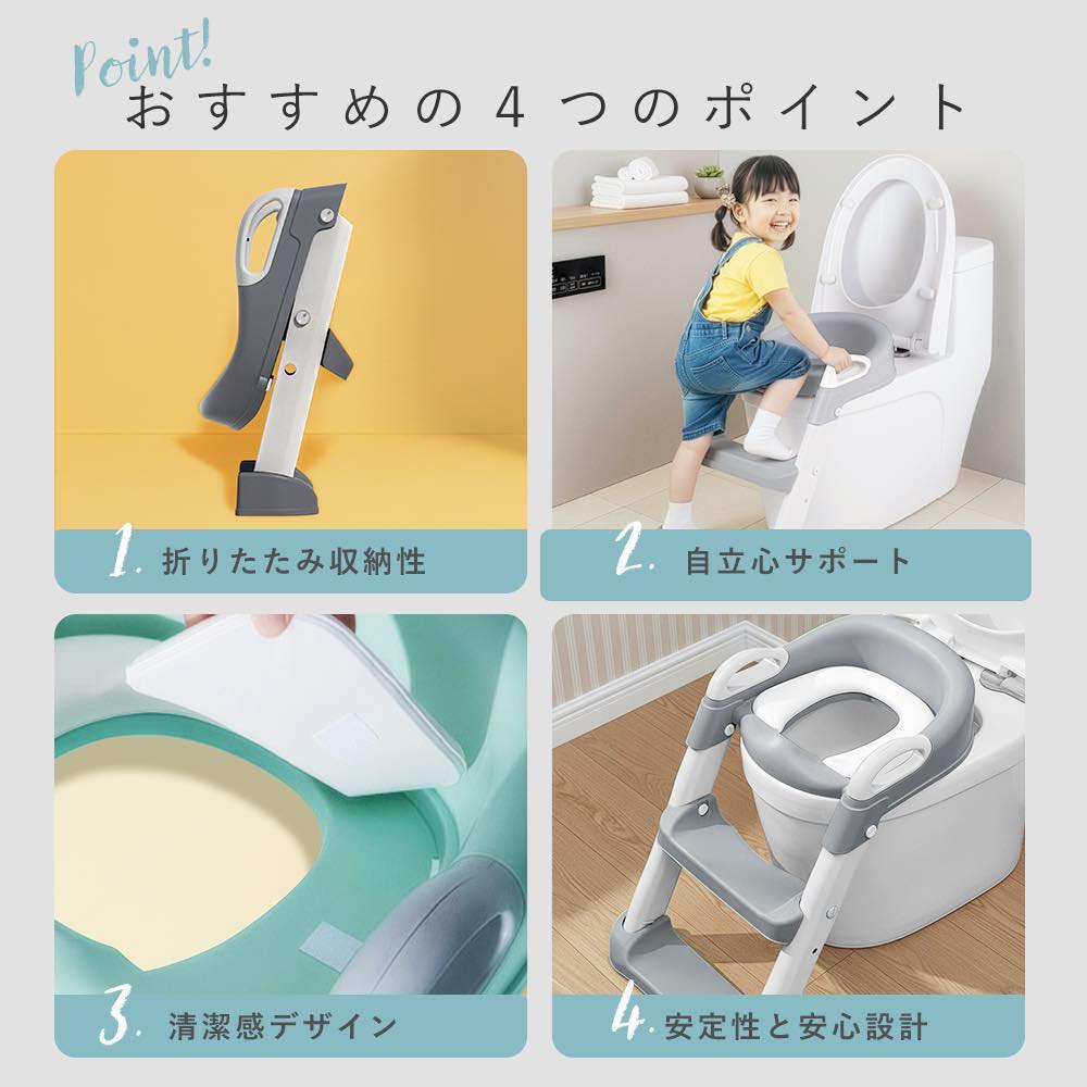 補助便座 子供 トイレ補助便座 折りたたみ トイレトレーニング ステップ付き補助便座 子供用 トイレ ステップ トイトレ 子ども 2歳 男の子 飛び散り 女の子