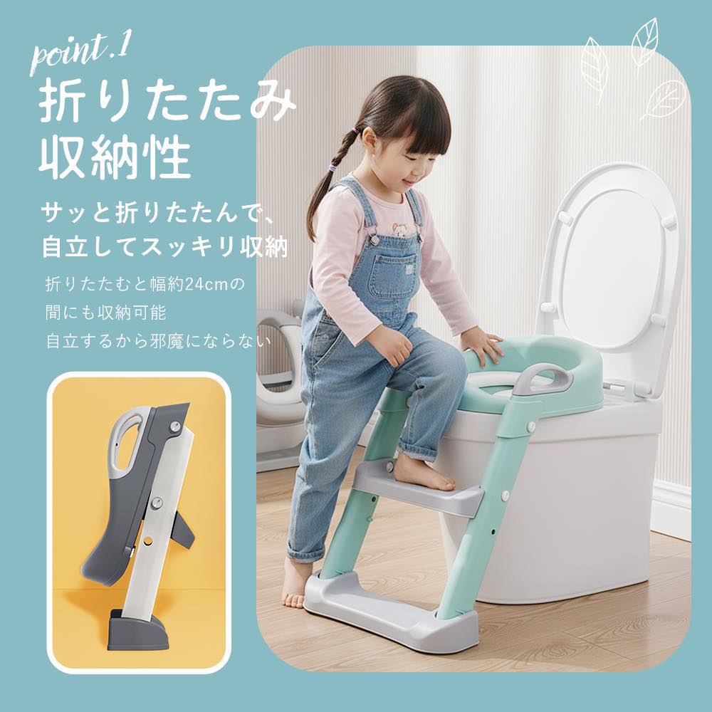 2〜7歳のお子さまのトイレトレーニングに最適。自宅はもちろん、祖父母宅や旅行先でも便利に使える。折りたたみ収納ができるため、省スペースなご家庭にもおすすめ。