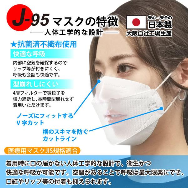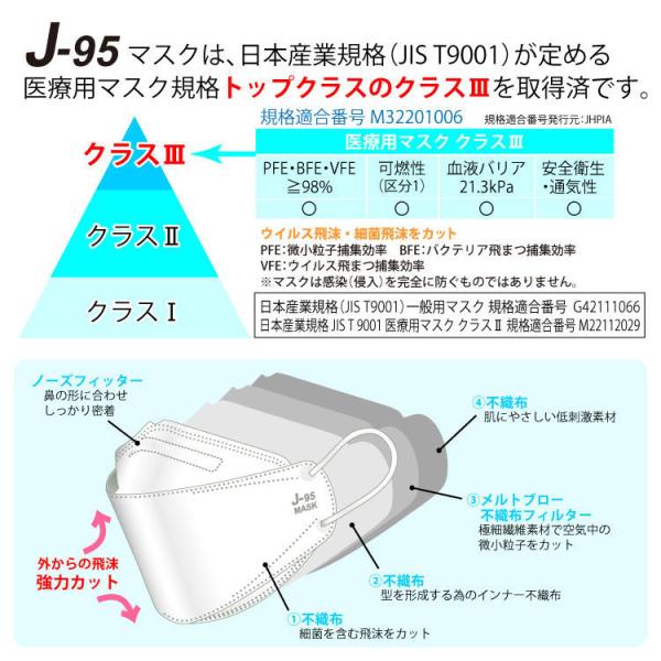 【JIS規格適合】J-95マスク(4層構造の3D立体型マスク)医療用クラス3取得