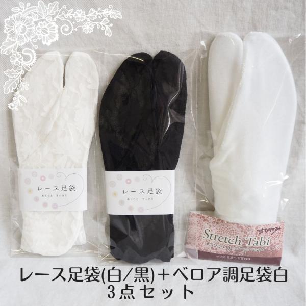 レース足袋 白・黒 ベロア調足袋 白 3点セット 足袋 振袖 お洒落着物