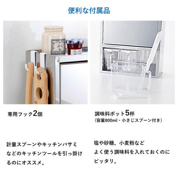 ・付属品:調味料ポット5杯 (1杯あたり800ml)、フック・2個