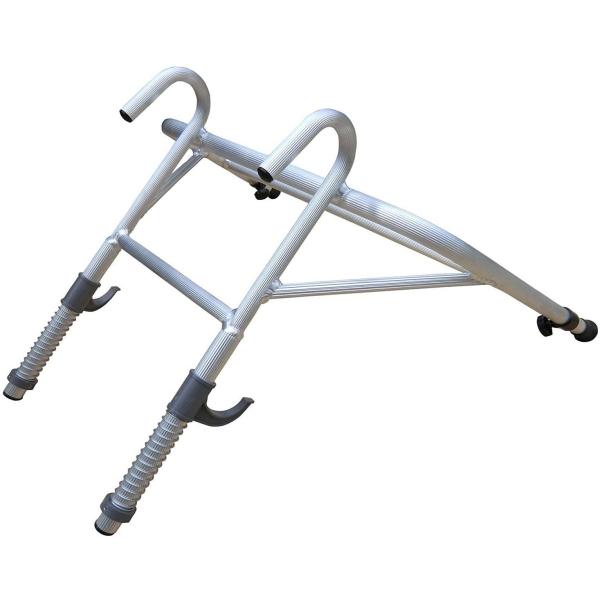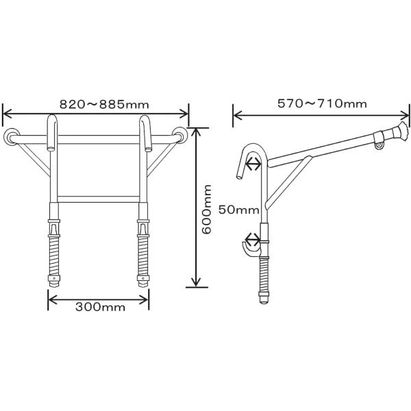 ◆ステップ間隔(外寸:ステップ上段の上面から下段の下面まで)が25cm〜35cm以内の一連または二連バシゴであればメーカーを問わず取り付け可能。(※ただし、ステップ部に補強がある物については、取り付かない可能性があります。また、ハシゴ兼用脚立には使用できません。)
