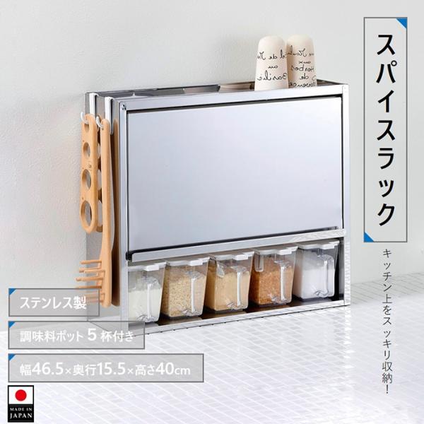 スパイスラック 調味料ラック 燕三条製 ステンレス ポット3杯 おしゃれ 日本製 調味料 収納 ラック 薄型 スリム 大容量 大竹産業