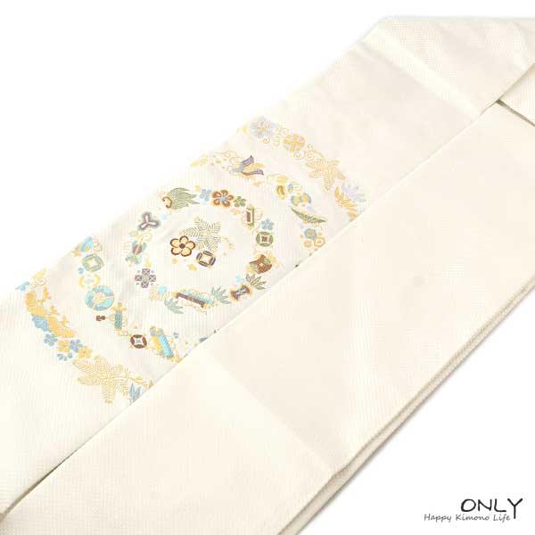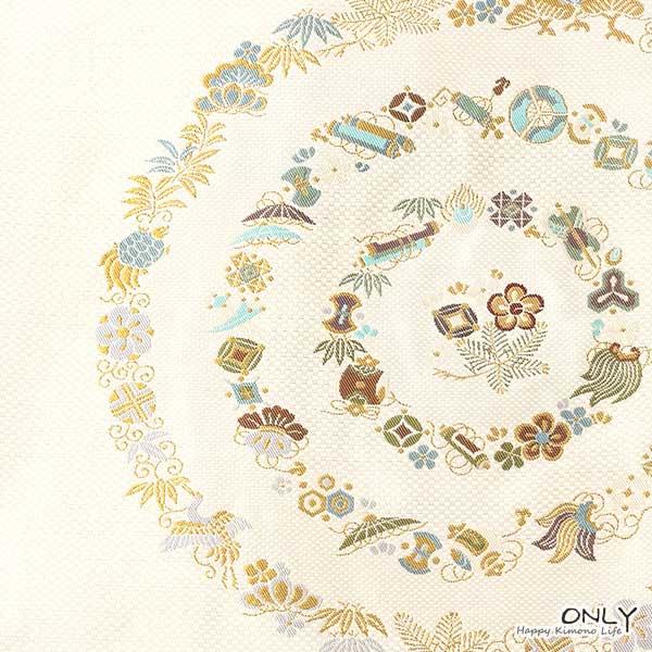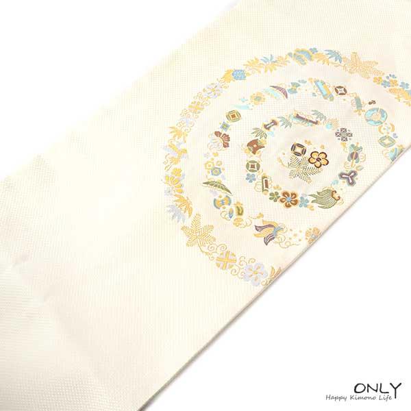 九寸 名古屋帯 仕立上り 京都西陣織 正絹 お洒落 宝尽くし 新作 新品 未使用 お単衣にも 老舗 辻梅機業店 ONLY na-t-006
