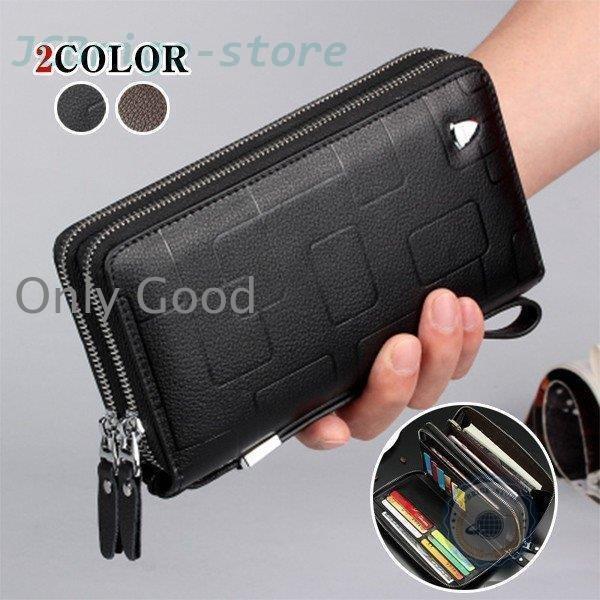 財布 メンズ 長財布 ラウンドファスナー 本革 大容量 ダブルジップ 多機能 ウォレット ストラップ シンプル 通勤