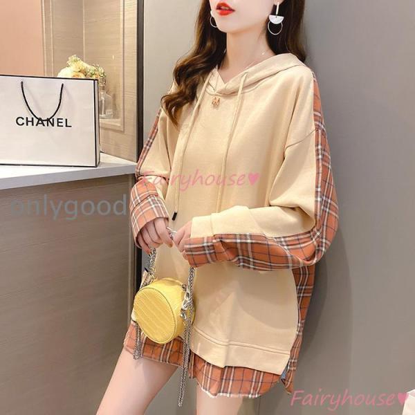 スウェット レディース 40代 秋服長袖 スエットシャツ チェック柄切り替えトレーナー カジュアル 韓国風トップス ジャージフェイクレイヤード プルオーバー