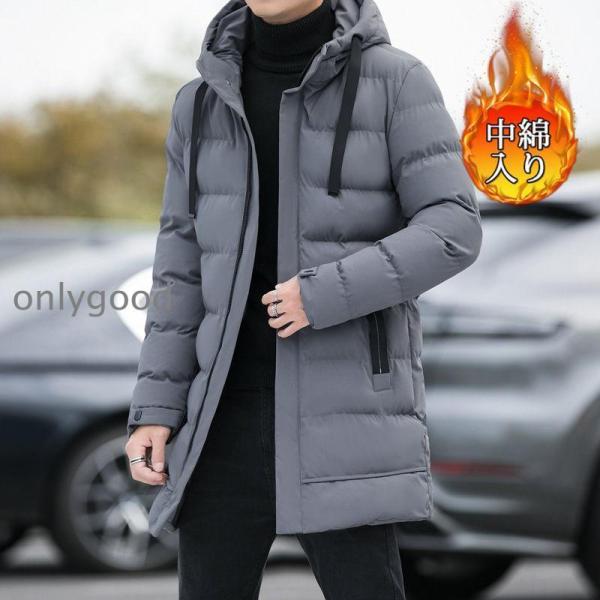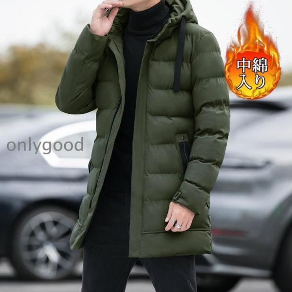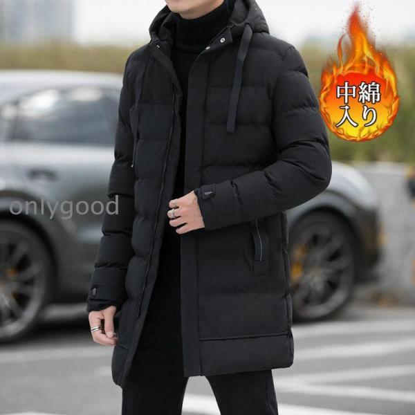 ダウンコート 中綿コート メンズ ロングコート フード付き ジャケット 中綿入り 防寒 秋冬 暖かい アウター 寒さ対策 冷え取り カジュアル おしゃれ