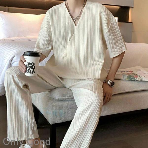 上下セット メンズ セットアップ 夏 半袖tシャツ ロングパンツ