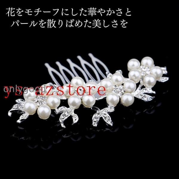 パールとラインストーンを1つ1つ丁寧に嵌め込んだヘアコーム。