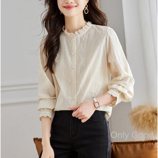 ブラウス 立ち襟 フリル レディース 長袖 シャツ 無地 白 襟フリル トップス シフォン シャツブラウス 薄手 春 夏 秋 可愛い