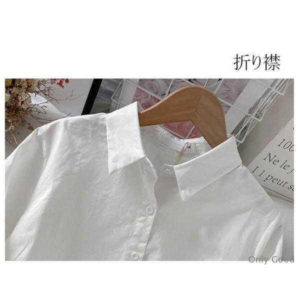 白シャツ シャツブラウス 春夏 きれいめ 七分袖 春物 レディース 前開き ボリューム袖 ゆったり 折襟 ボタン留め デザイン 大きいサイズ 無地