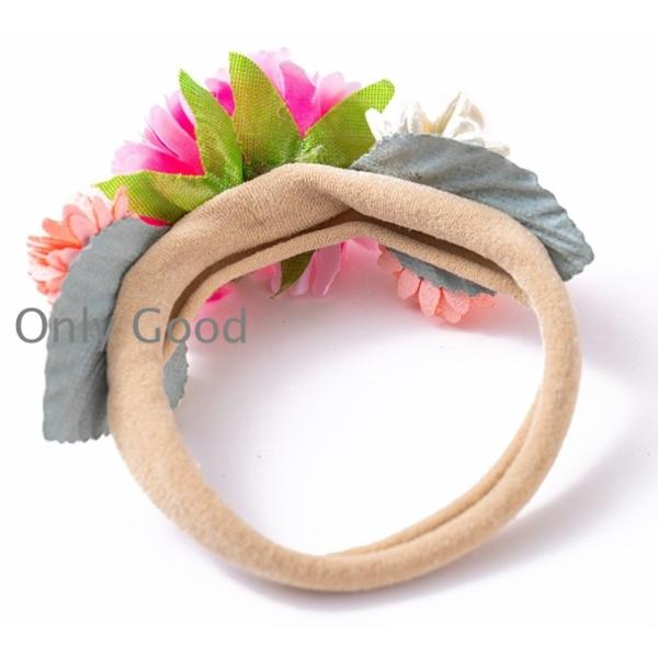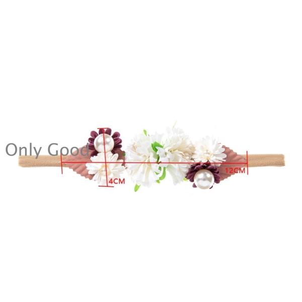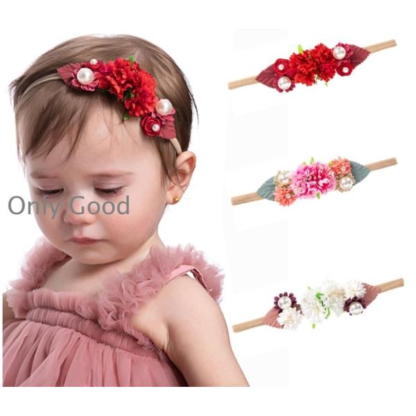 ヘアバンド赤ちゃんベビーフラワーマム菊パール和風新生児髪飾り