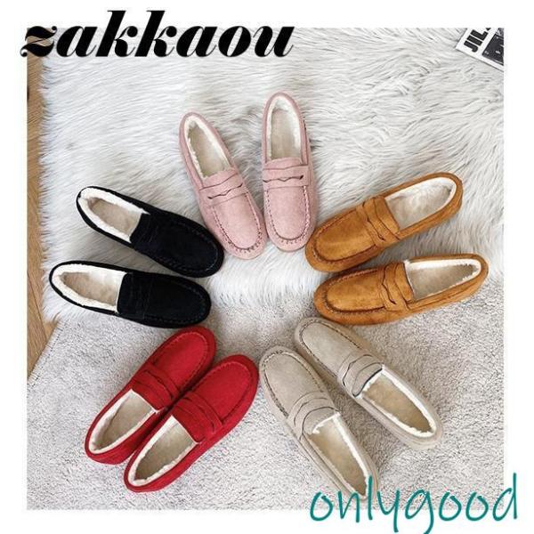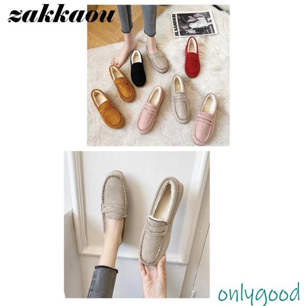 レディースモカシン レディース フェイクファー シューズ フラット ムートン ぺたんこ 裏起毛 シンプル 秋冬 もこもこ 履きやすい 防寒 スエード