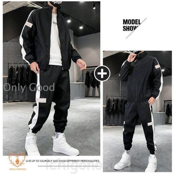 メンズ ジャージ 上下 セット 2点セット フード付き カジュアル セットアップ 部屋着 冬 通学 配色切替 売れ筋 お洒落 新作 おしゃれ
