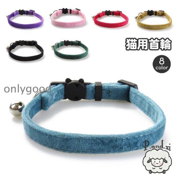 猫用首輪 ネコ用 ペット用品 セーフティーバックル ねこ キャット カラー 鈴付き おしゃれ かわいい シンプル 無地 単色 ベロア調 チョーカー お