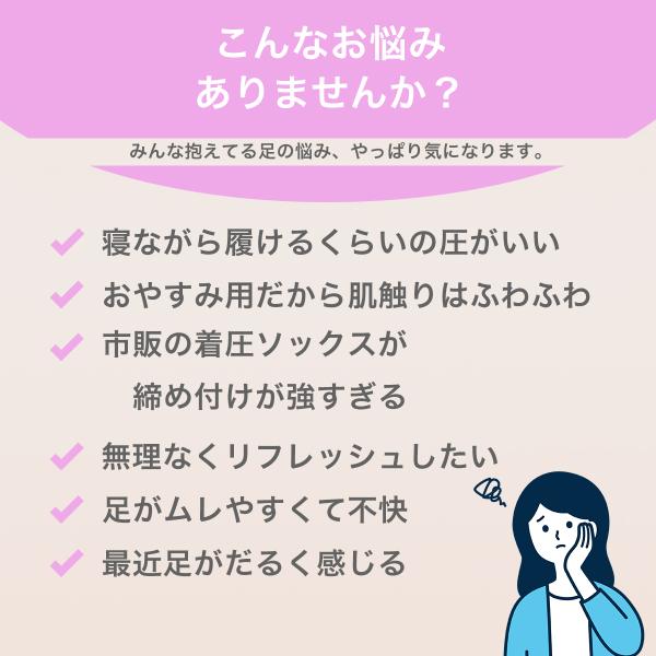 就寝用として開発された着圧ソックスなので睡眠の邪魔をしないソフトな着圧感。また素材はふわもこで1年中あなたの足を包み込みます。
