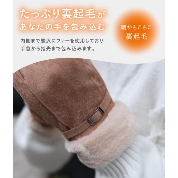・内側から手首にかけて贅沢にふわふわの起毛が使われているので、風が強く寒い日でもあなたの手を包み込みます