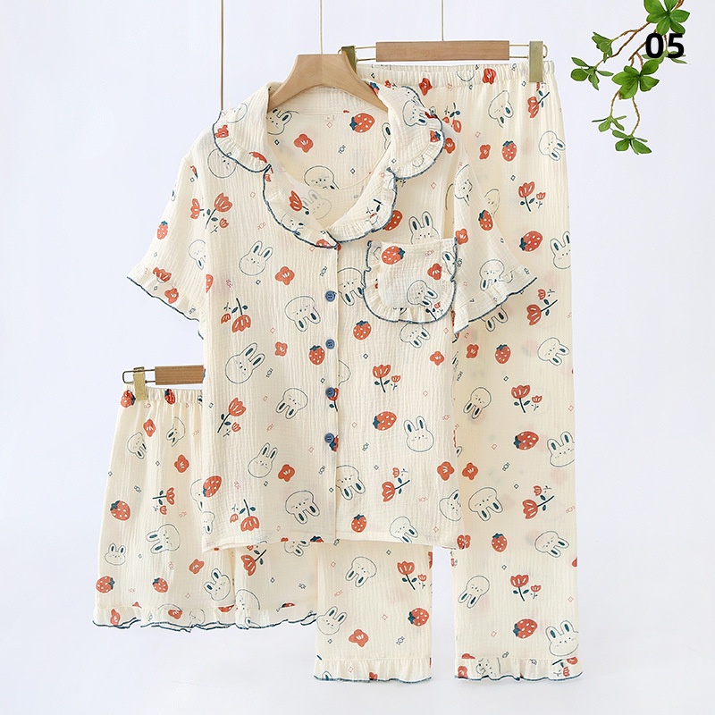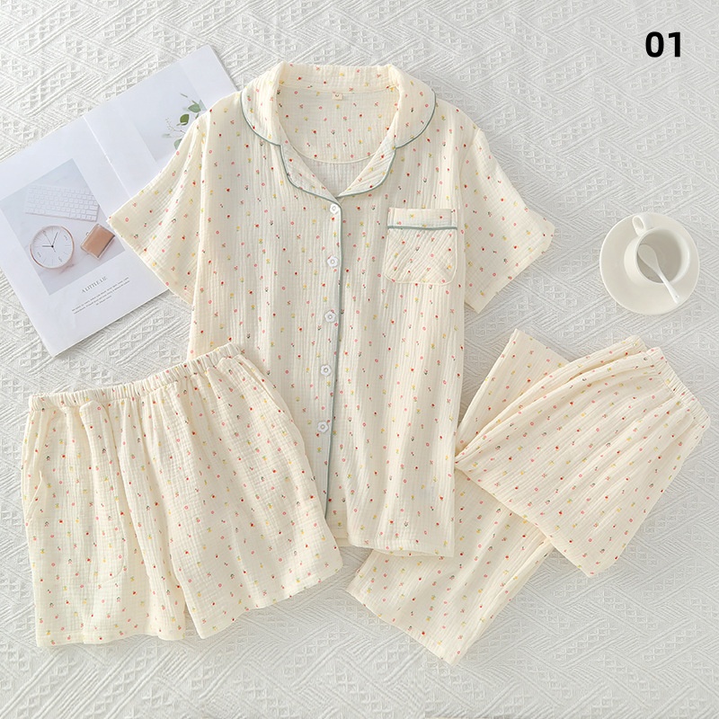 3点セット レディース 花柄パジャマ 前開き 上下セット 半袖 綿 ガーゼ風 ルームウェア フリル 可愛い 長袖 部屋着 ワンピース 通気性 春 夏 秋 ゆったり