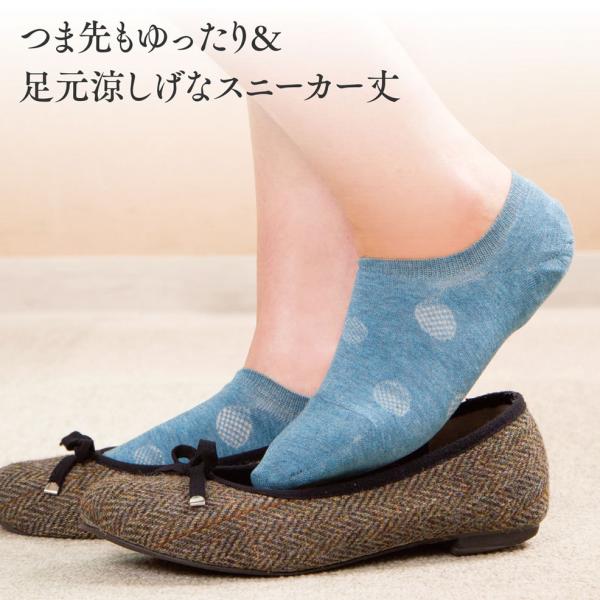 スニーカー丈のカバーソックスなので、外出する時は、靴を履いた時にも見た目も涼しげで足元すっきり。お家にいる時は、さっと履いてかかとケアできる使い勝手の良さがポイント!生地もやわらかで、つま先部分は締めつけすぎないゆったり楽々仕様です。